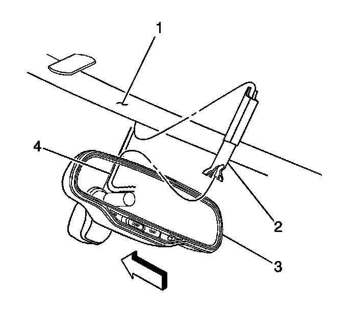 5. Ensure the wire cover is tucked into the forward edge of the headliner (1).