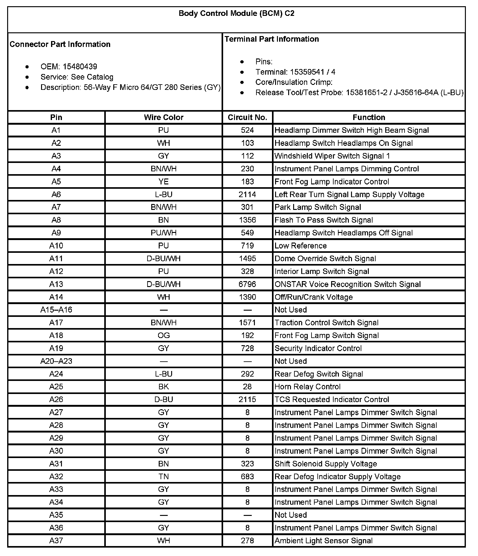 Body Control Module (BCM) C2 (Part 2):