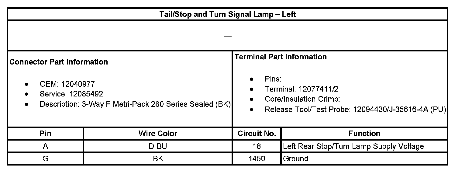 Tail/Stop And Turn Signal Lamp - Left: