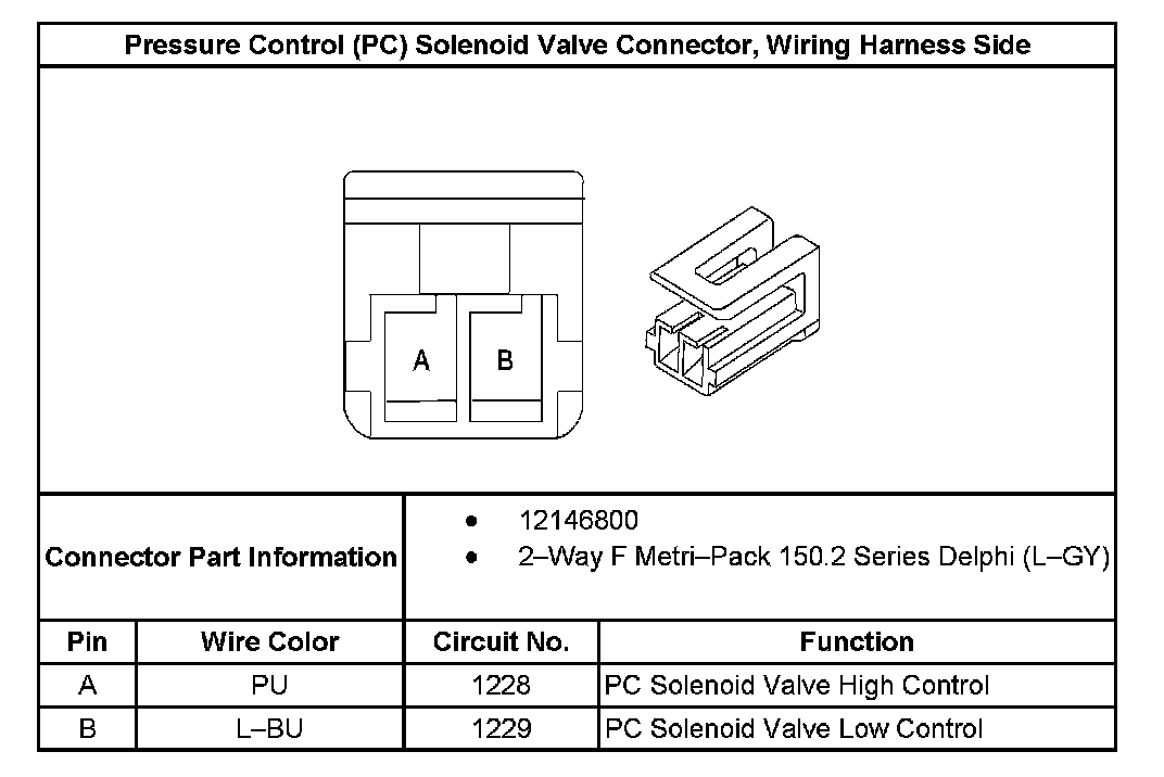 Pressure Control Solenoid Valve Connector, Wiring Harness Side: