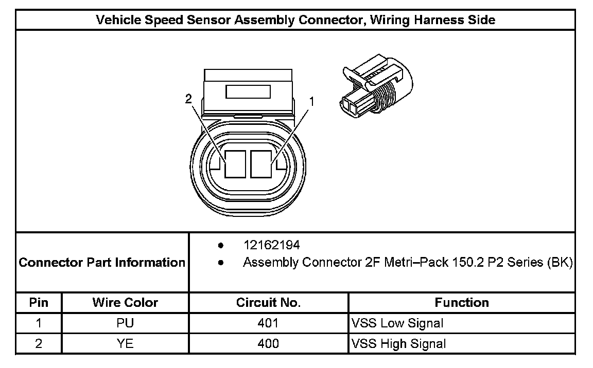 Vehicle Speed Sensor Assembly Connector, Wiring Harness Side: