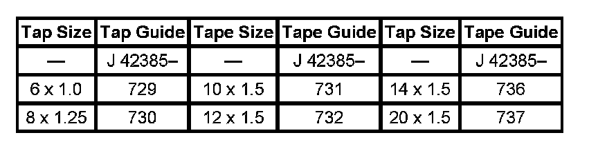 The tool kit J42385-400 is designed for use with either a suitable tap wrench or drill motor. Limited access and larger hole repair may process better using a tap wrench. An extension J43965 may also be necessary to drive the thread repair tooling dependent on access to the hole being repaired.