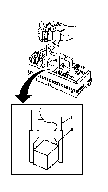 3. Using the J 43244 (1) position the tool on opposing corners of the compressor relay (2).