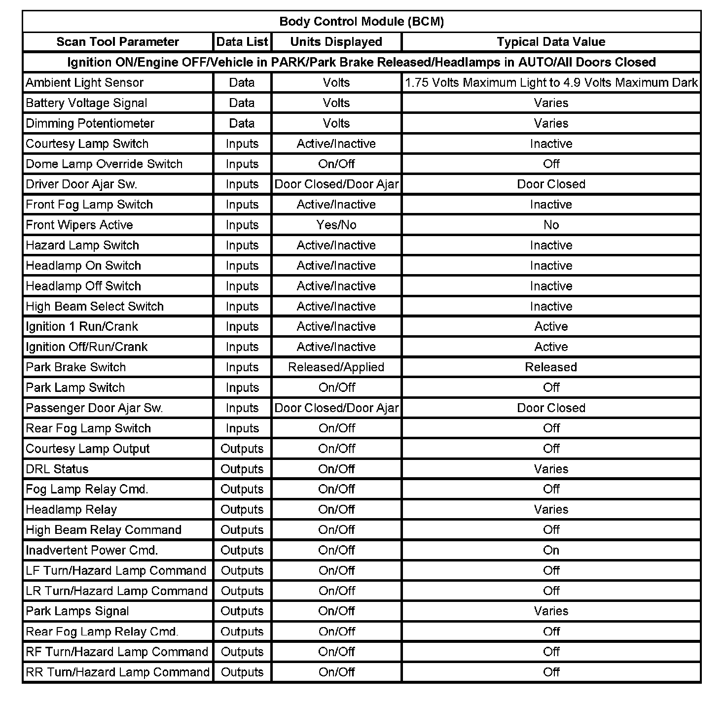 Body Control Module (BCM):