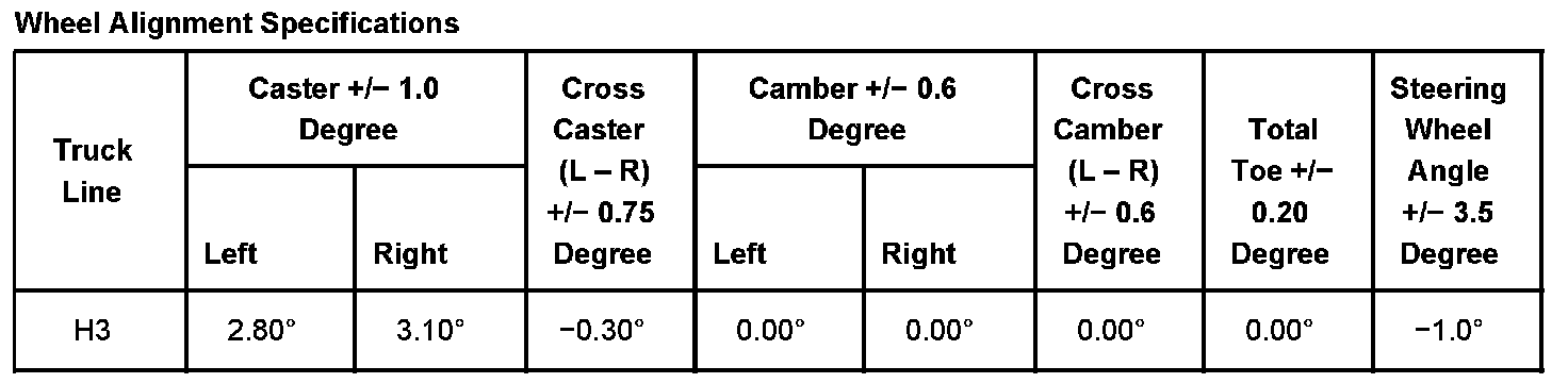 This bulletin is being issued to revise the Wheel Alignment Specifications in the Wheel Alignment sub-section of the Service Manual. Please replace the current information in the Service Manual with the following information.