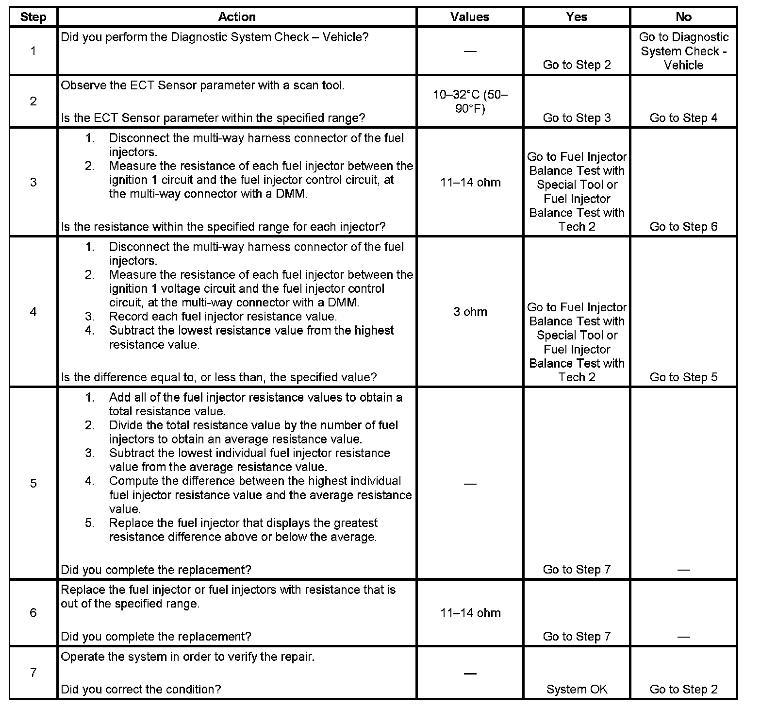 - Perform the fuel injector coil test within the conditions of the customer's concern. A fuel injector condition may only be apparent at a certain temperature, or under certain conditions.