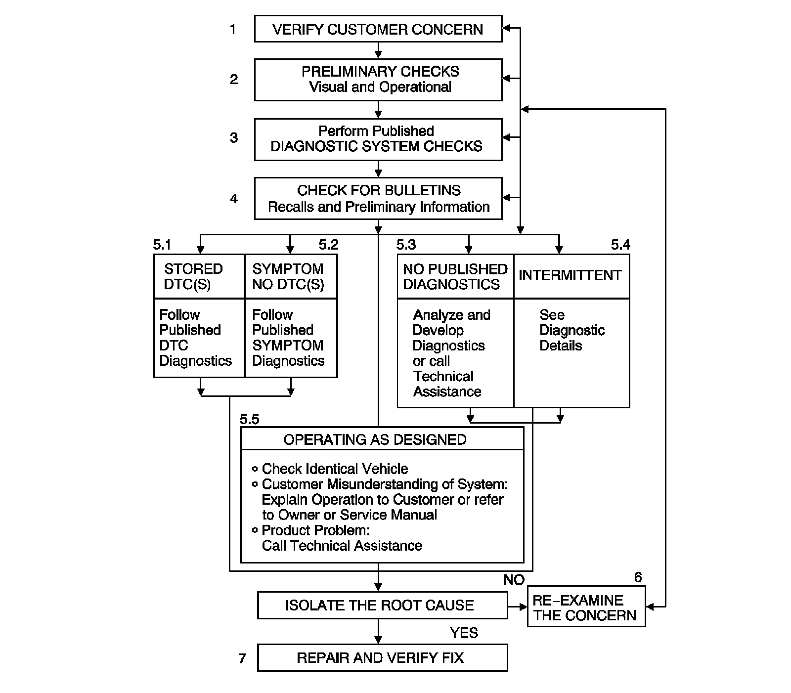 6.Re-examine the Concern: If a technician cannot successfully find or isolate the concern, a re-evaluation is necessary. Re-verify the concern. The concern could be an intermittent or normal.