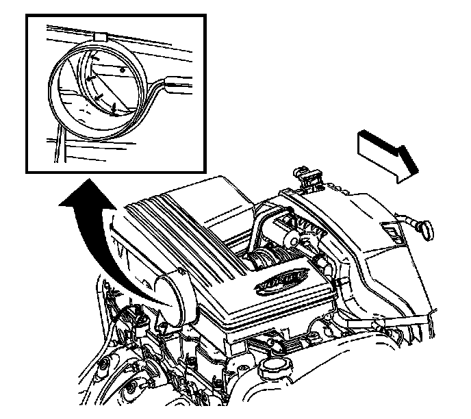 2. View into the air cleaner resonator to ensure the outlet duct is not rolled under at the throttle body assembly.