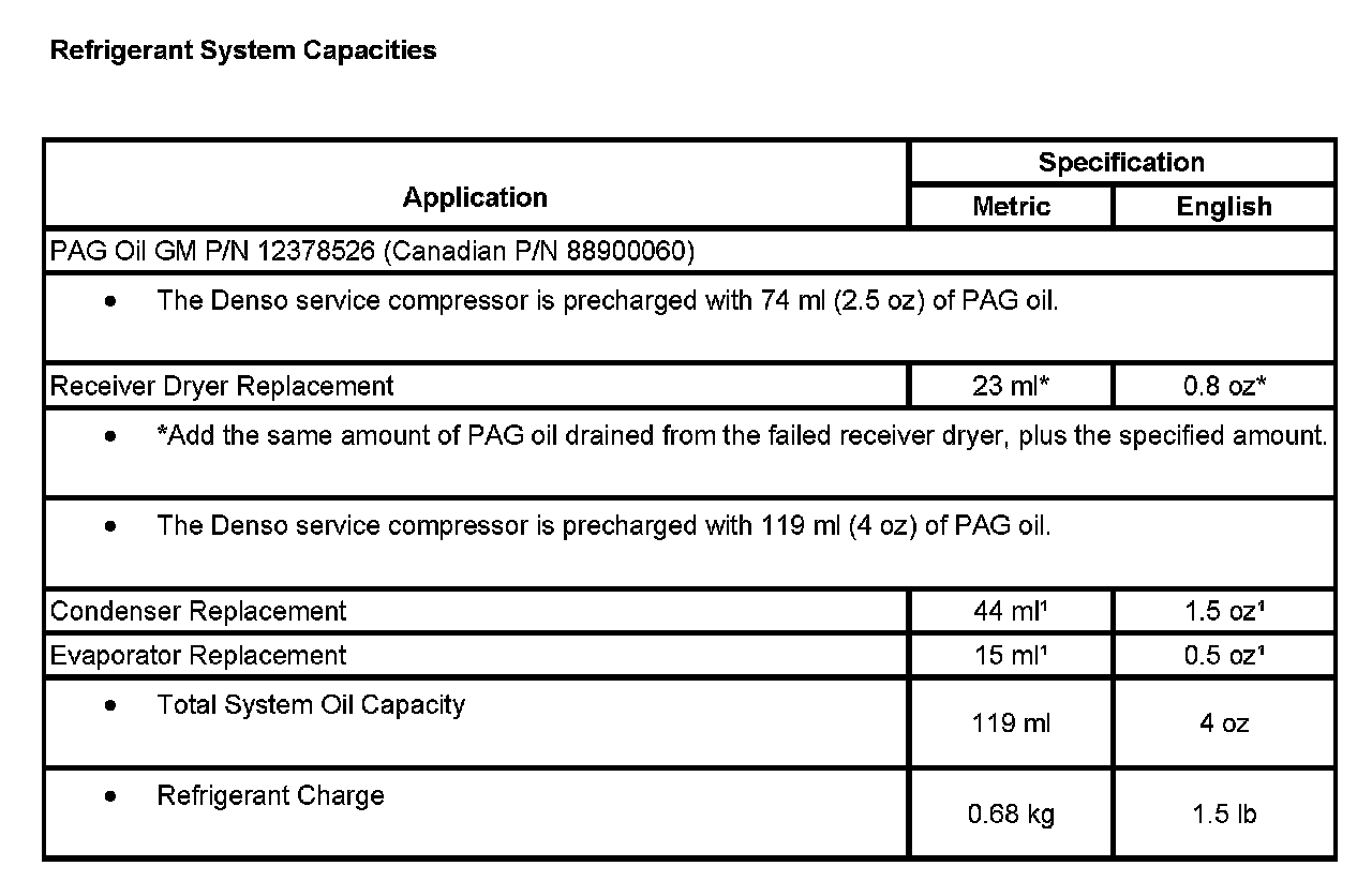 Refrigerant System Capacities: