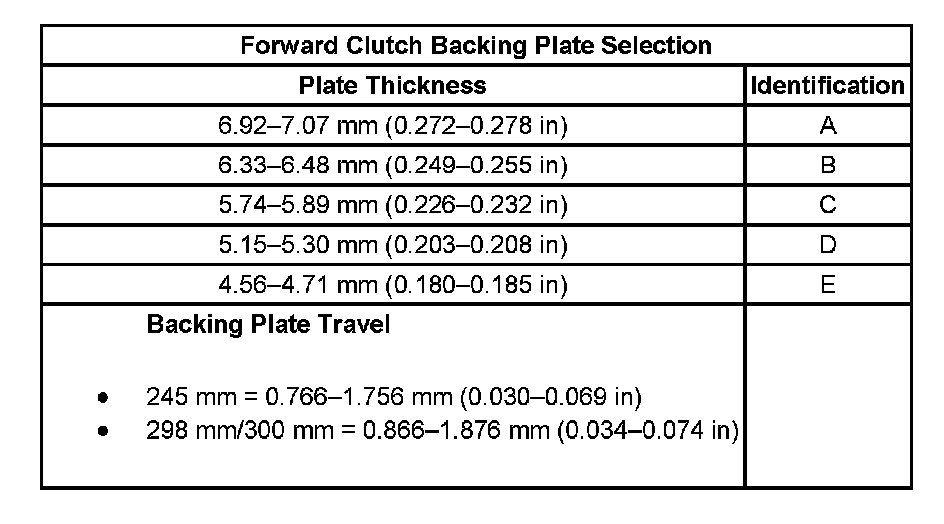 Forward Clutch Backing Plate Selection: