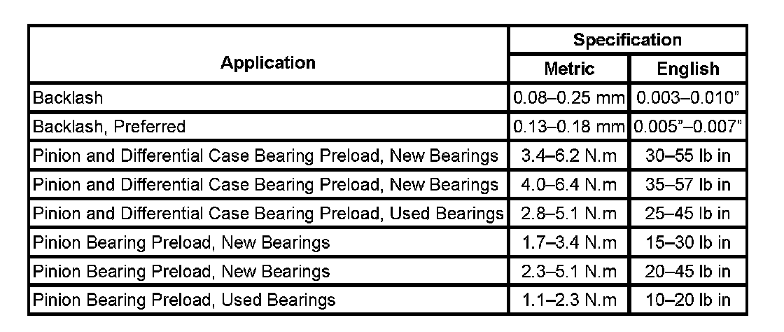 Axle Preload and Backlash Specifications: