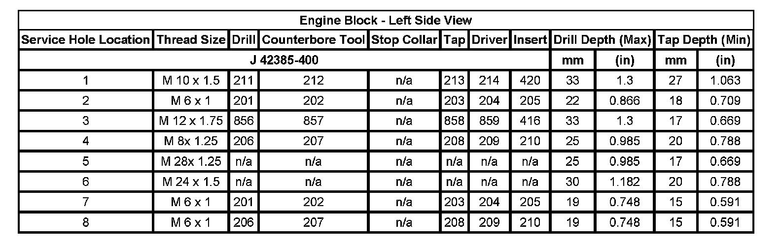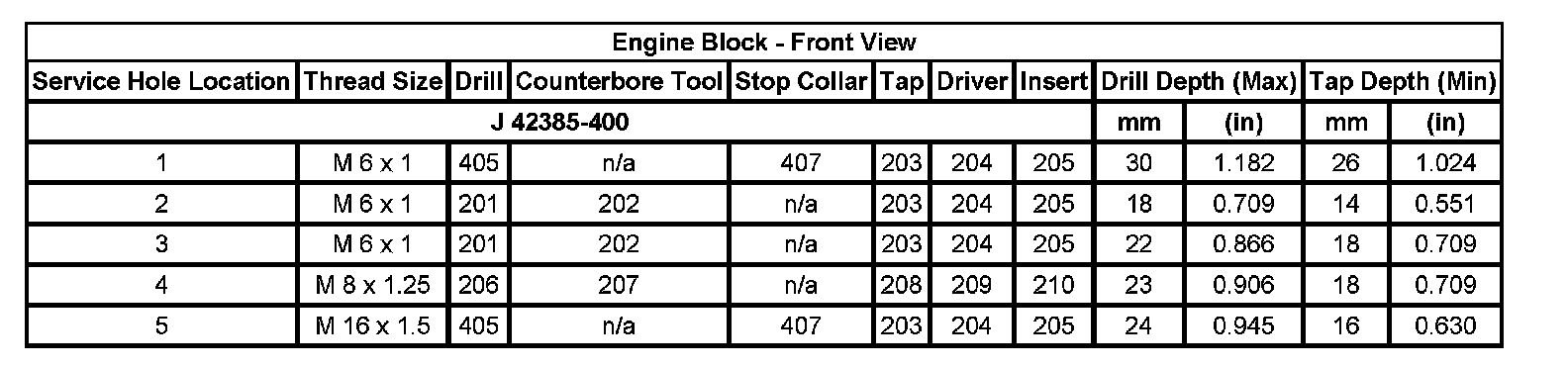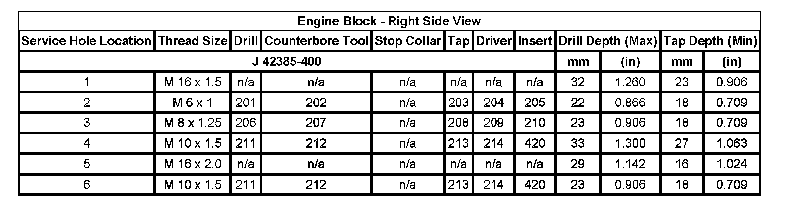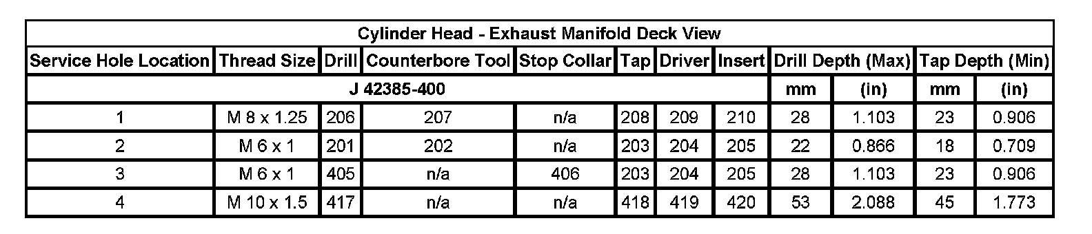 Thread Repair Specifications