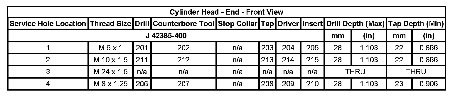 Cylinder Head - End - Front View: