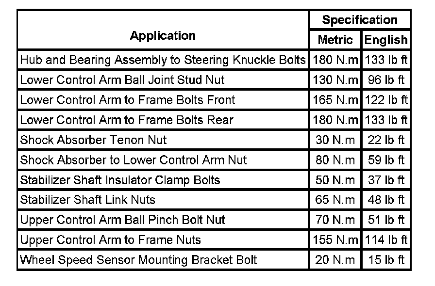 Fastener Tightening Specifications: