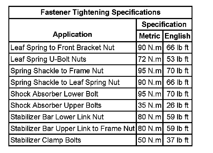 Fastener Tightening Specifications: