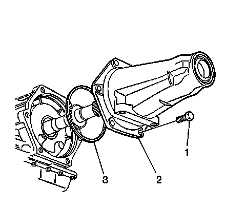 3. ^ Tighten the case extension bolts (1) to 45 Nm (33 ft. lbs.).
