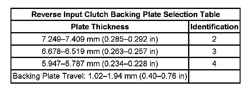 Reverse Input Clutch Backing Plate Selection: