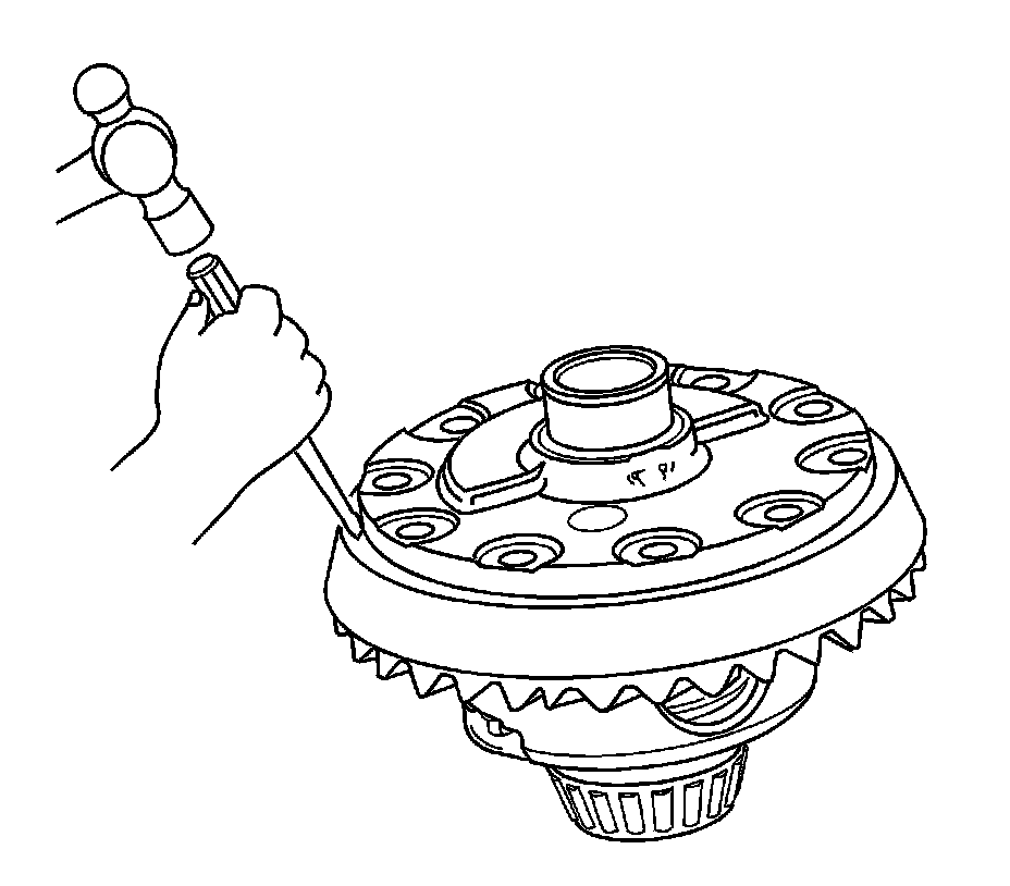 Notice: Do not pry the ring gear from the differential case. Prying the ring gear from the differential case may cause damage to the ring gear and/or the differential case.