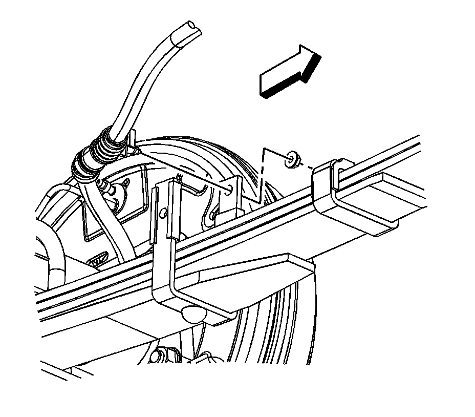 5. Remove the retaining bolts from the park brake cables at the rear leaf springs. Left side shown, right side similar.