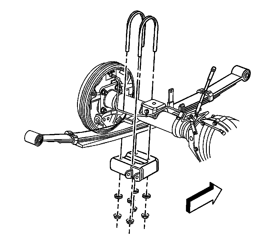 1. With the aid of an assistant, position the rear axle assembly on the rear leaf springs.
