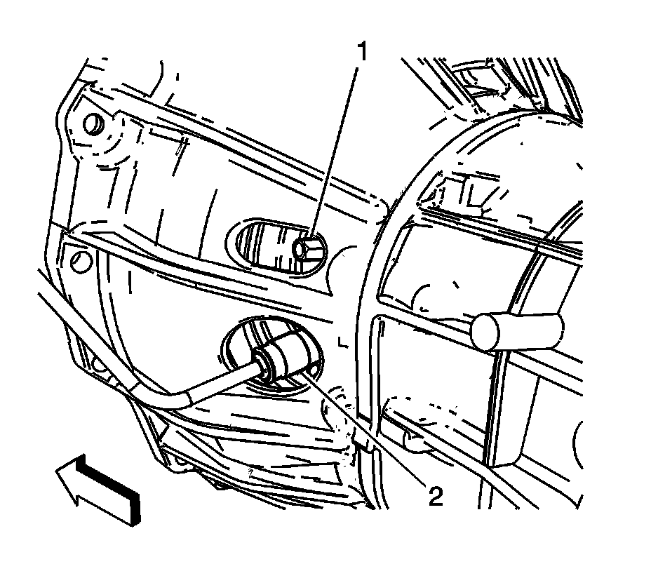5. Disconnect the engine wiring harness electrical connector (1) from the Backup lamp switch (2).