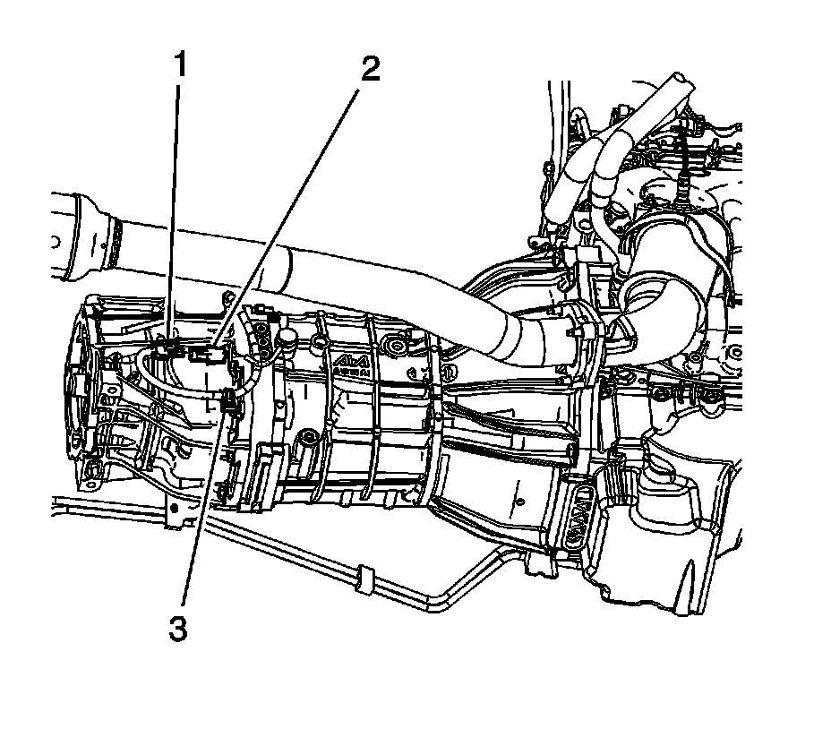 6. Disconnect the engine wiring harness clip (3) from the clip bracket, and position the harness over the transmission.