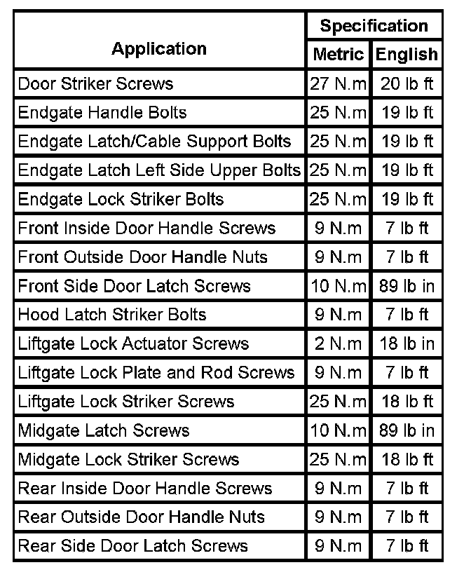 Fastener Tightening Specifications
