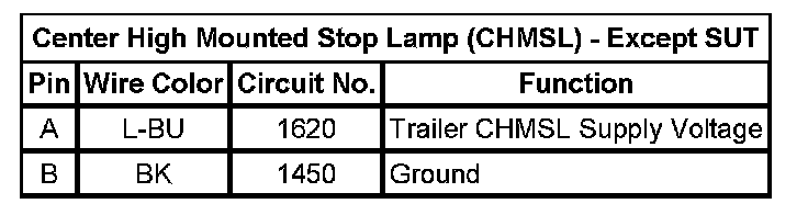 Center High Mounted Stop Lamp (CHMSL) - Except SUT