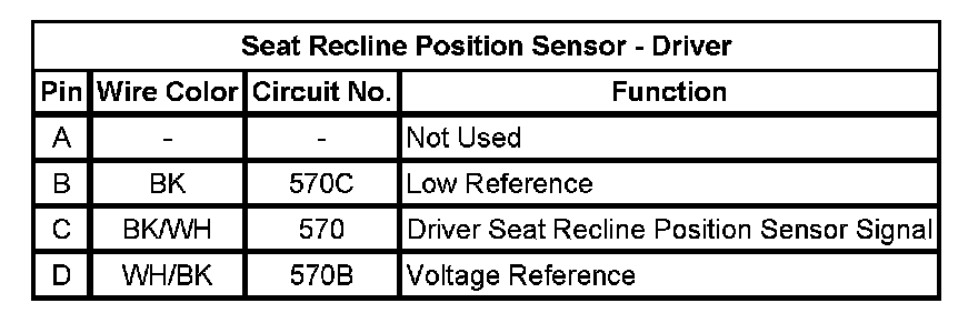 Seat Recline Position Sensor - Driver