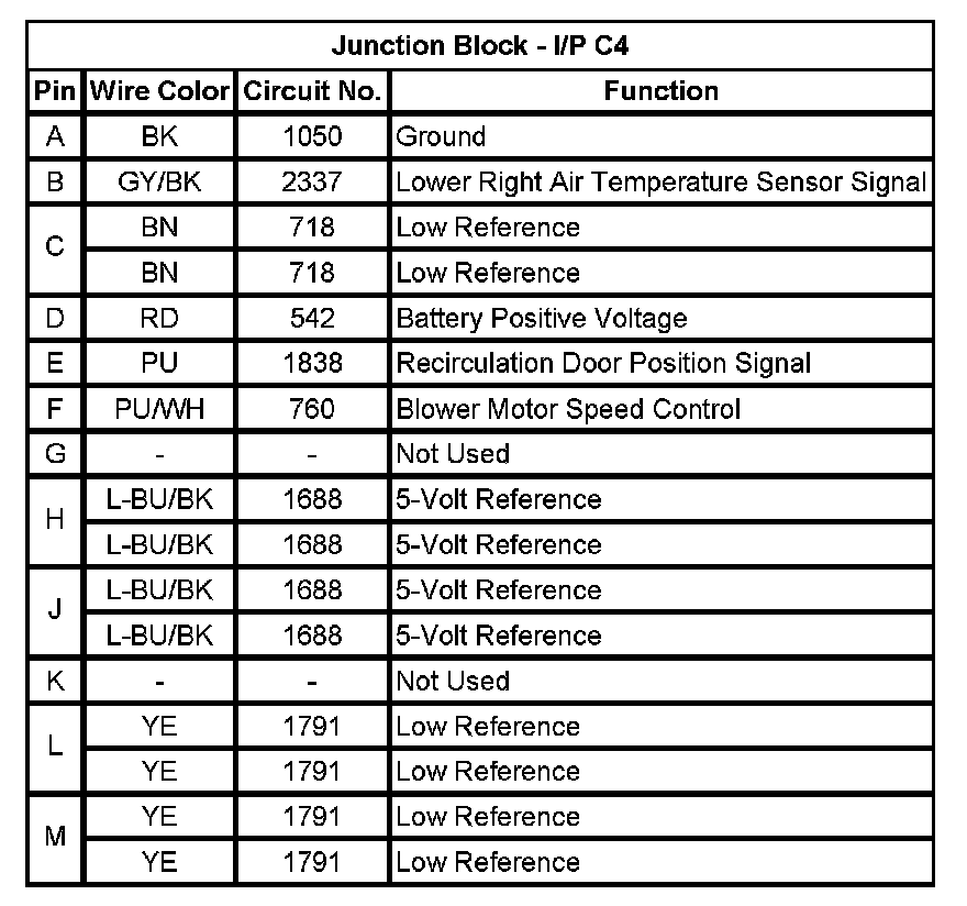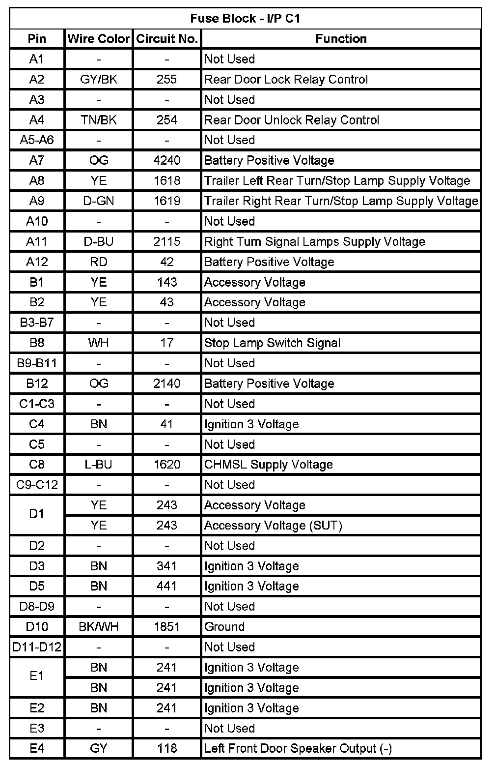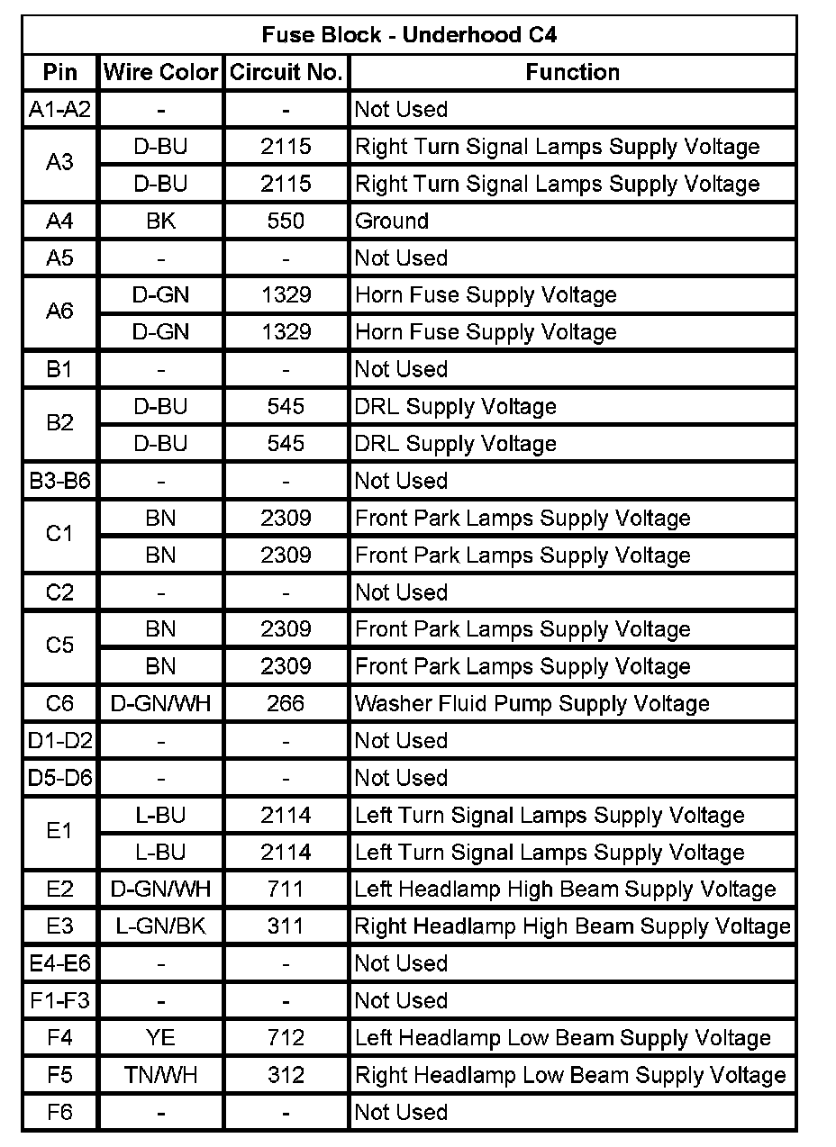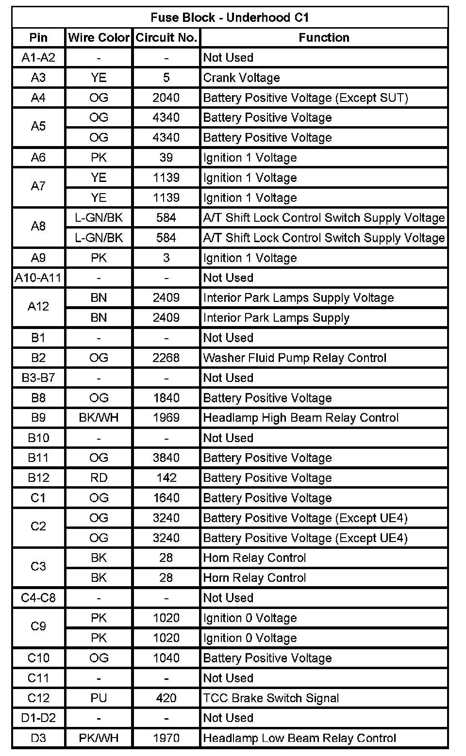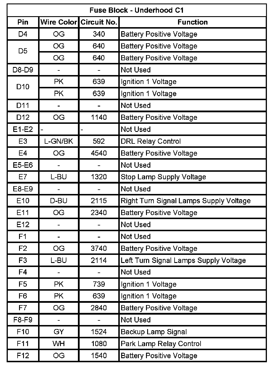 Fuse Block - Underhood C1 (Pin D4 To F12):