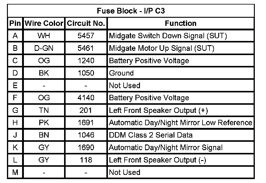 Fuse Block - I/P C1 (Pin E5 To F12):