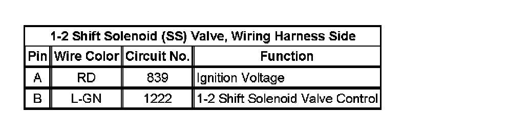 1-2 Shift Solenoid (SS) Valve, Wiring Harness Side: