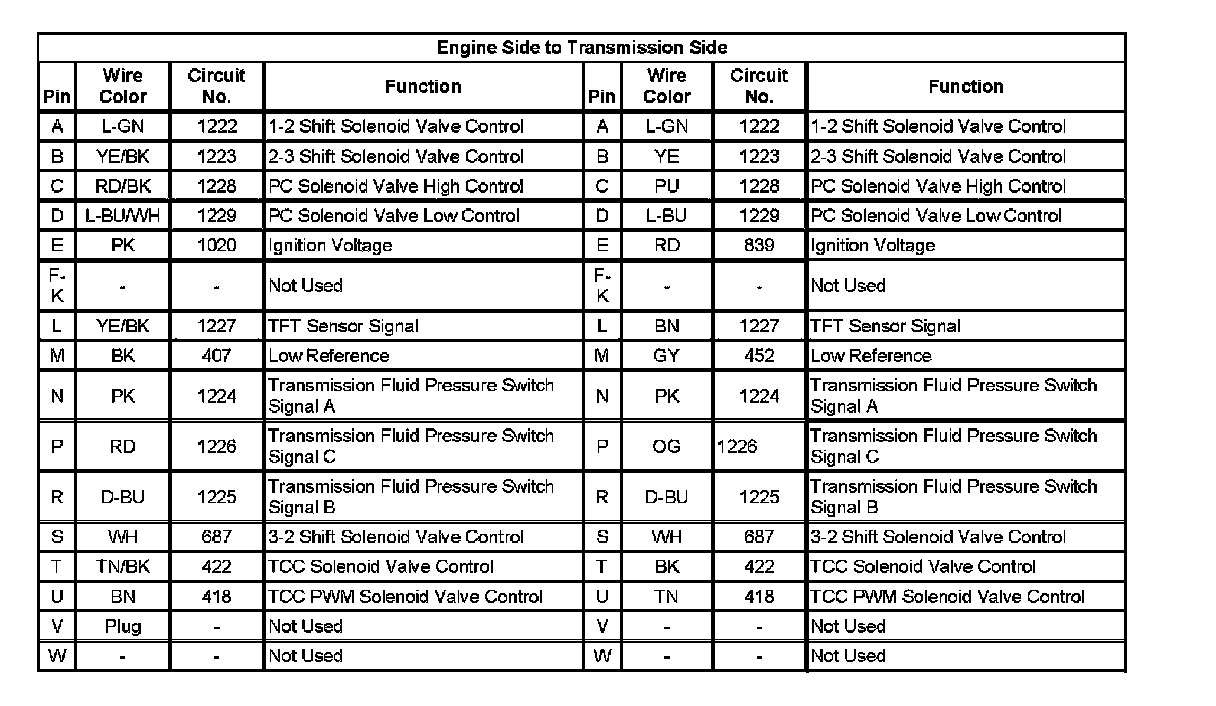 Automatic Transmission Inline 20-Way Connector End View