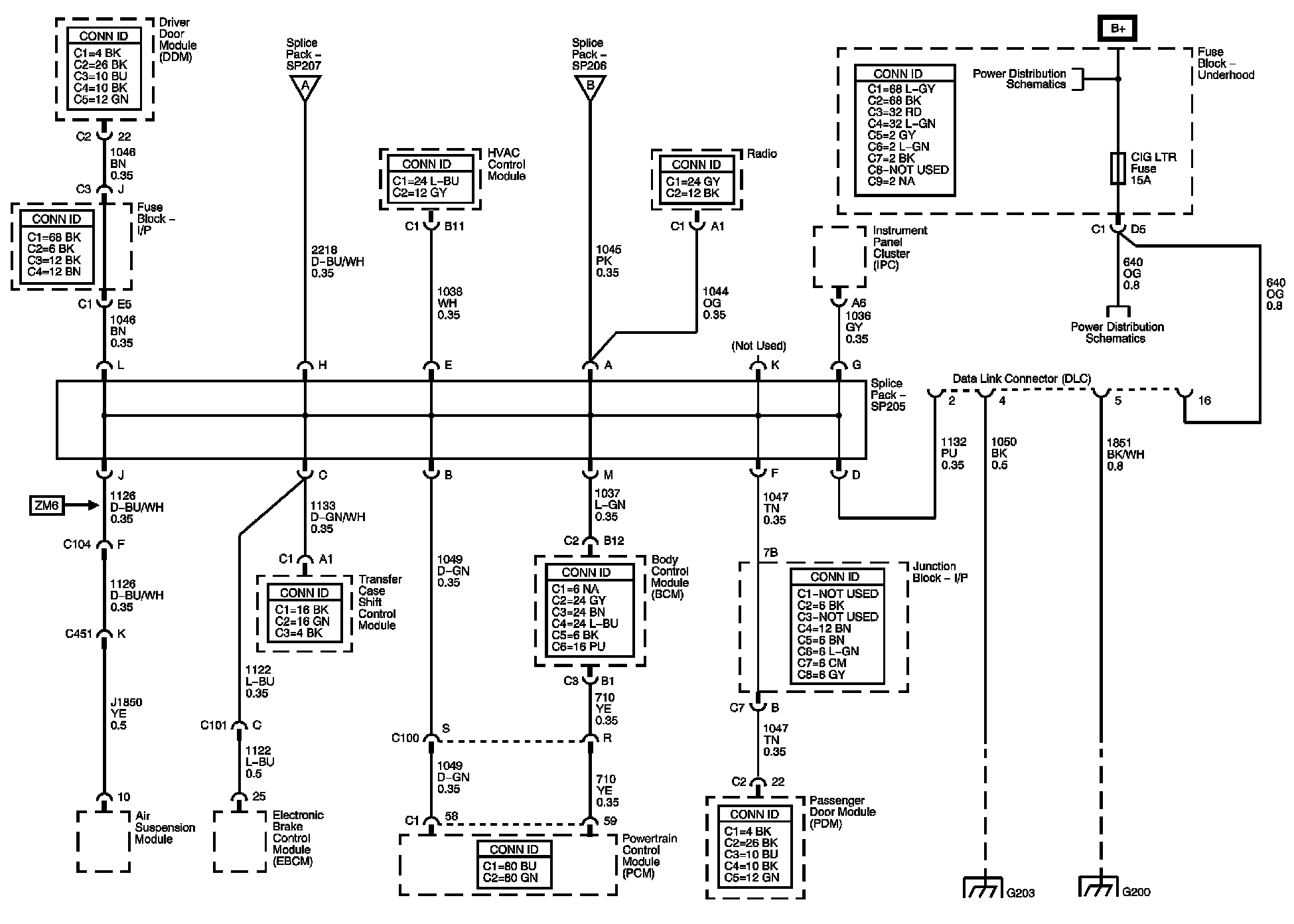 Power, Ground, Data Link Connector, and SP205
