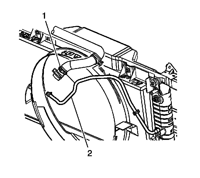 5. Install the radiator vent inlet hose (2) to the radiator.