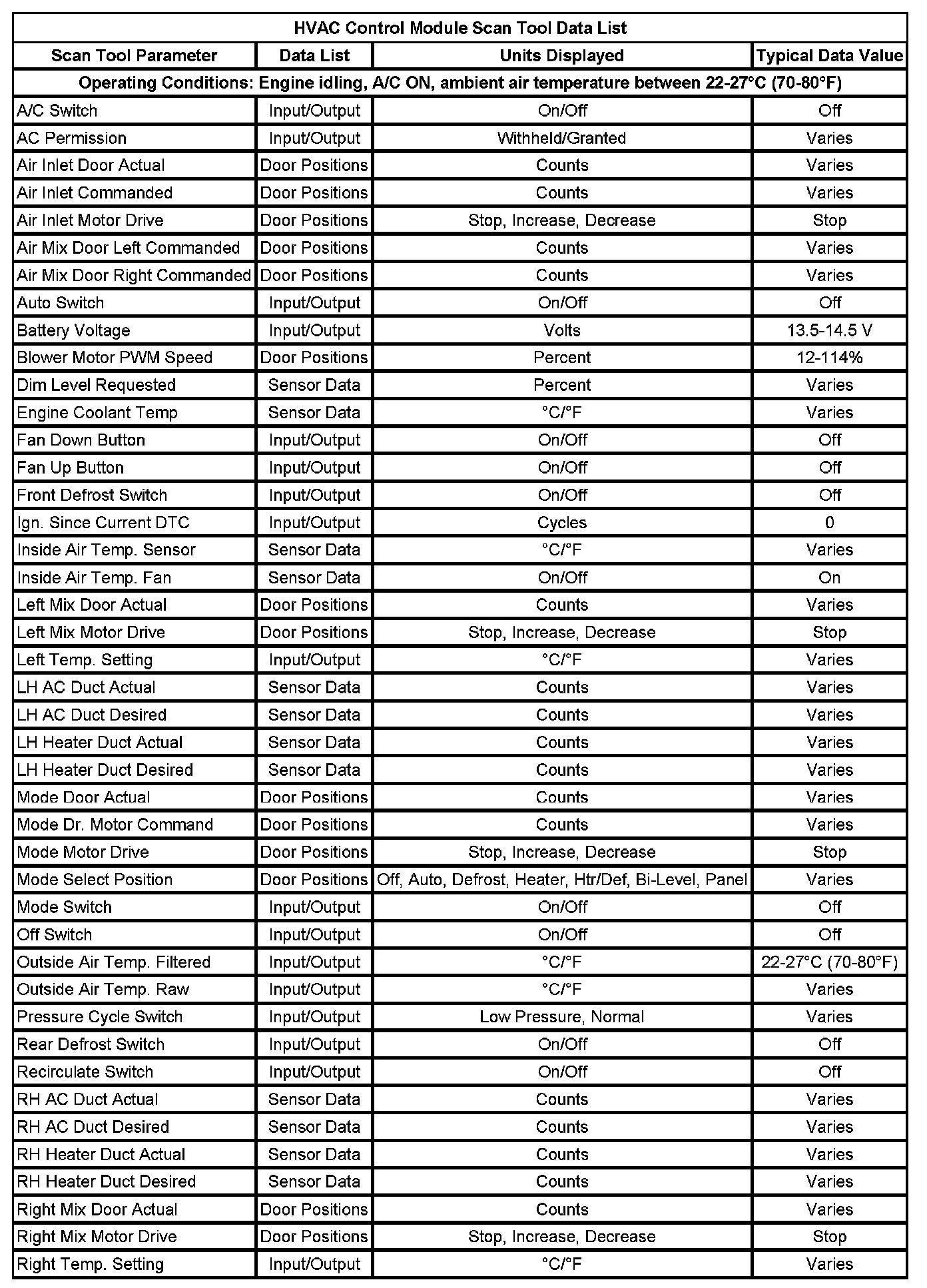 Scan Tool Data List