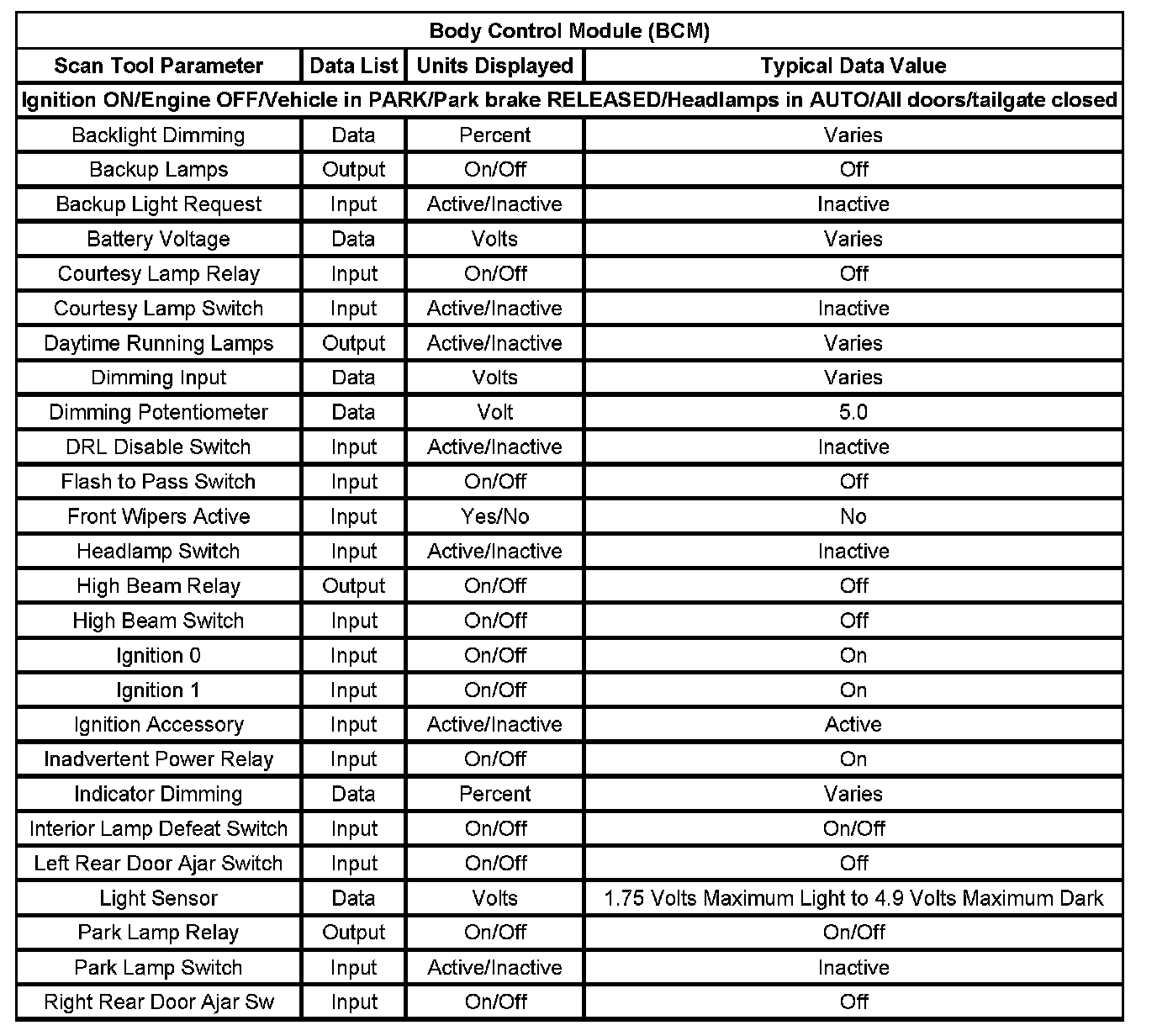 Scan Tool Data List