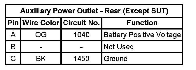 Auxiliary Power Outlet - Rear (Except SUT)