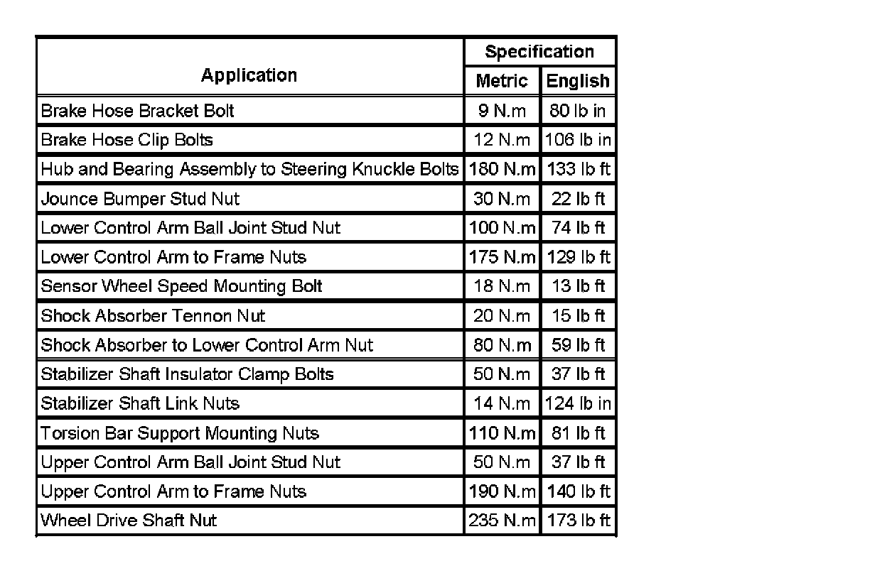 Fastener Tightening Specifications: