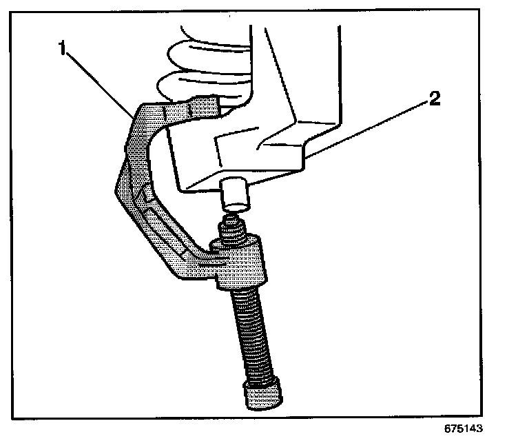 8. Disconnect the lower ball joint stud from the steering knuckle using J 43631 and the J 45851 (1).