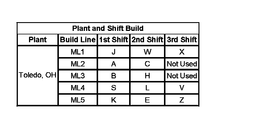 5 - Shift Built (A, B, J = First Shift; C, H, W = Second Shift)