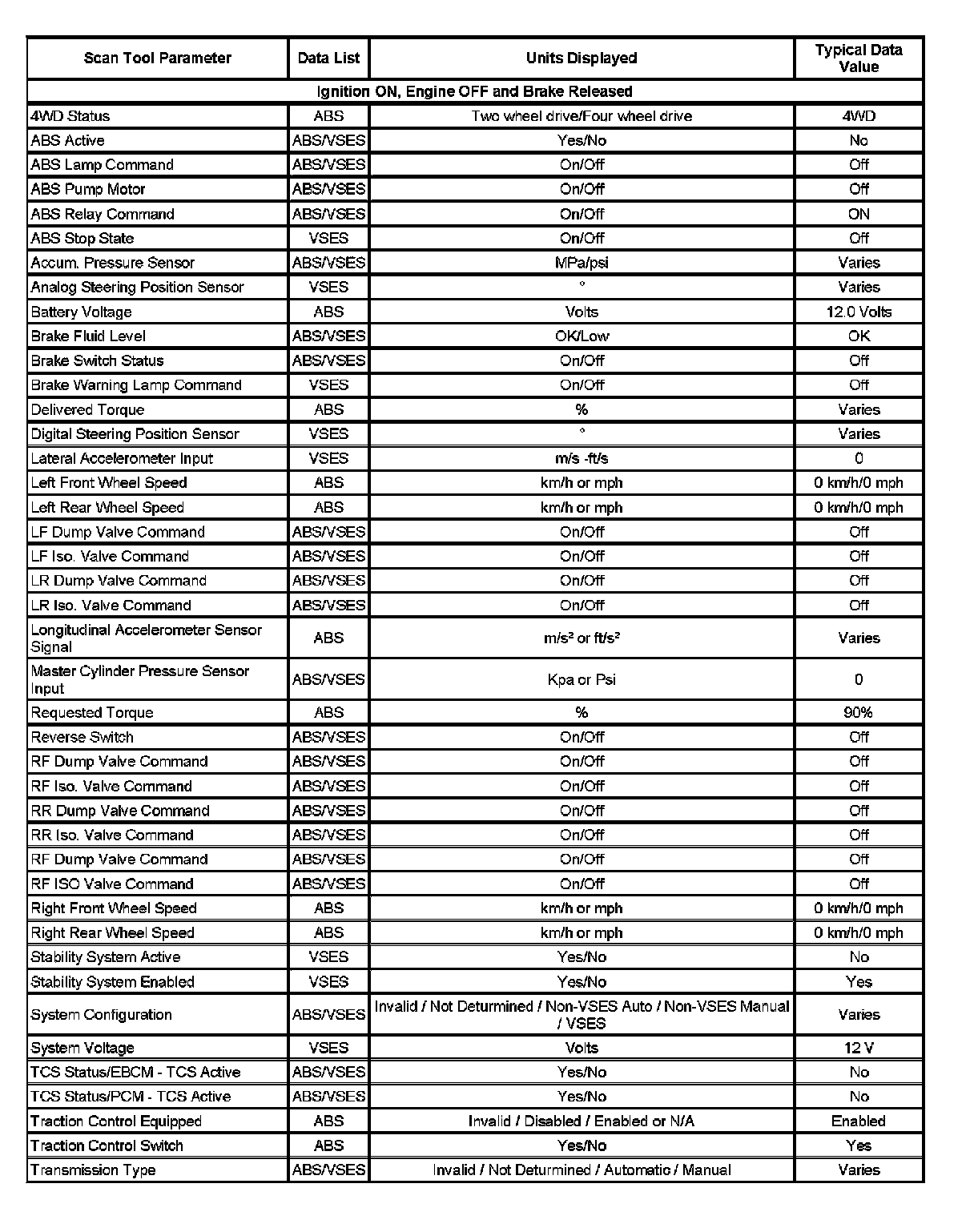 Scan Tool Data List