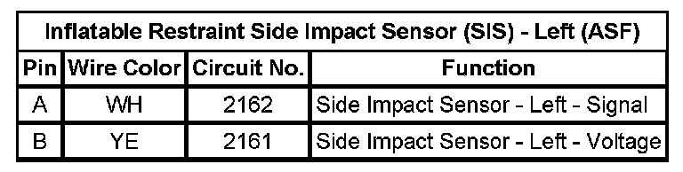 Inflatable Restraint Side Impact Sensor (SIS) - Left (ASF)