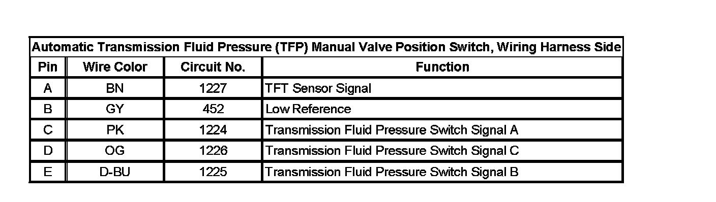 Automatic Transmission Fluid Pressure (TFP) Manual Valve Position Switch, Wiring Harness Side: