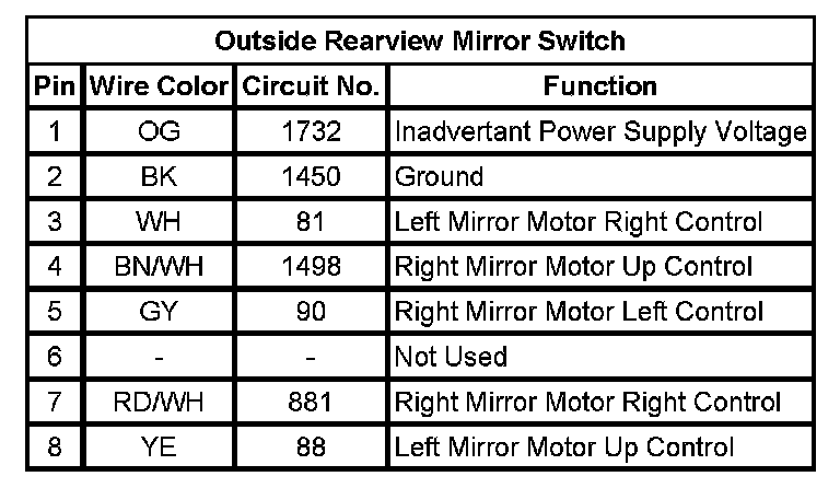 Outside Rearview Mirror Switch