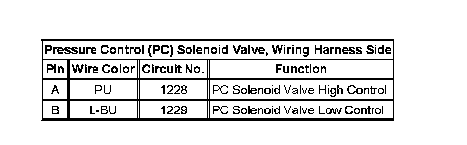 Pressure Control (PC) Solenoid Valve, Wiring Harness Side