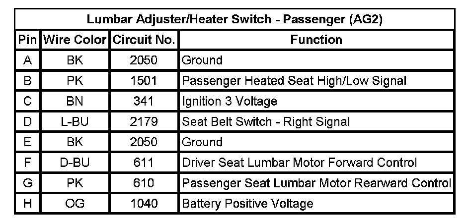 Lumbar Adjuster/Heater Switch - Passenger (AG2)