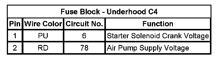 Fuse Block - Underhood C2 (Pin 17 To 47):