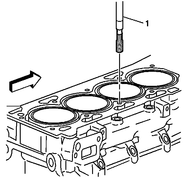5. Remove the alignment pin (1) from the cylinder head bolt hole.