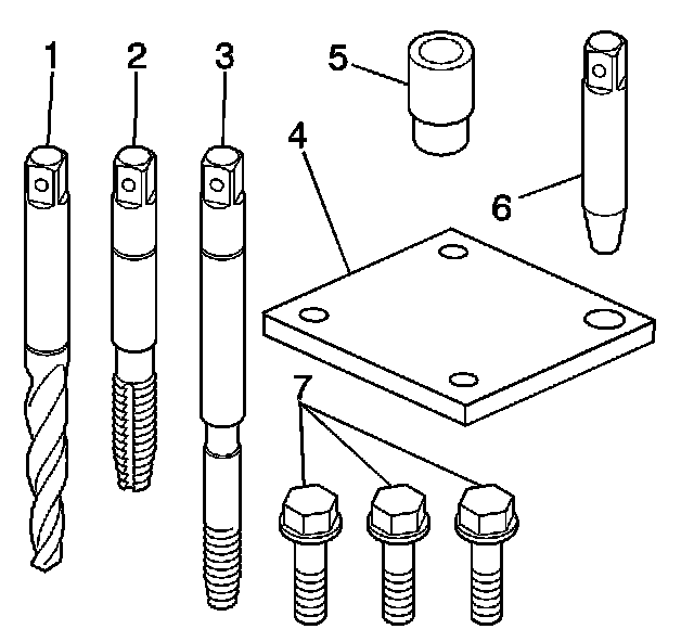 * The use of a cutting type fluid GM P/N United States 1052864, GM P/N Canada 992881, WD 40(R) or equivalent is recommended when performing the drilling, counterboring and tapping procedures.